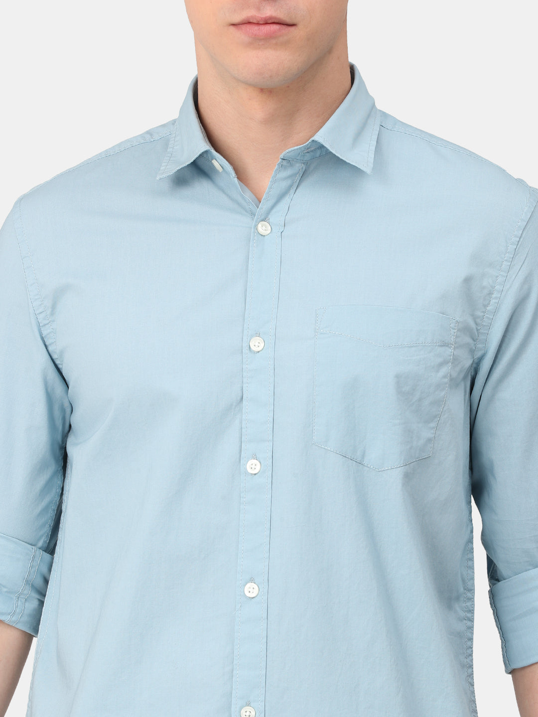 Epysode 100% Cotton Full Sleeves Solid Blue Shirt in Slim Fit with a classic collar. Dull is the new highlight. This dull blue shaded shirt is what you need to bring out the bright side of you. It goes well with any trousers and can be another pick for a blue colour fanatic.